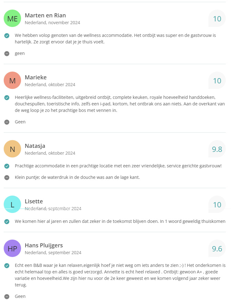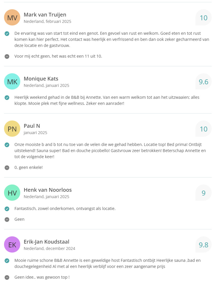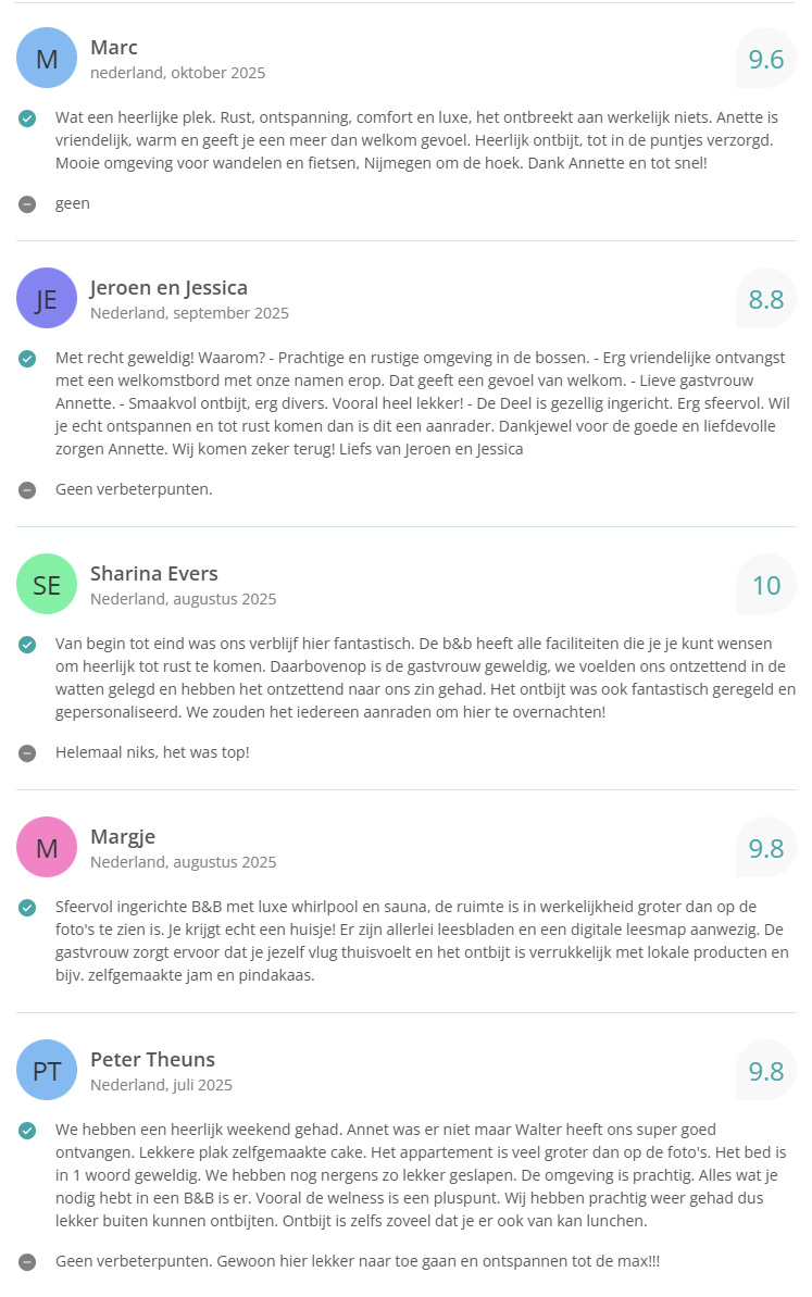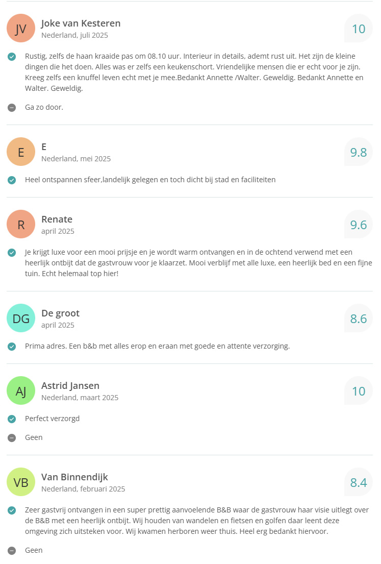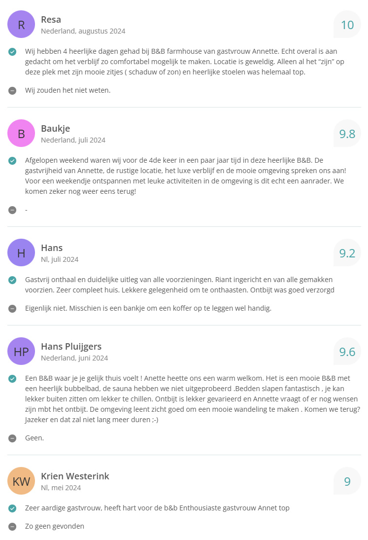Bekijk hier onze reviews. Totaal aantal reviews 338 met een gemiddelde van 9,6!